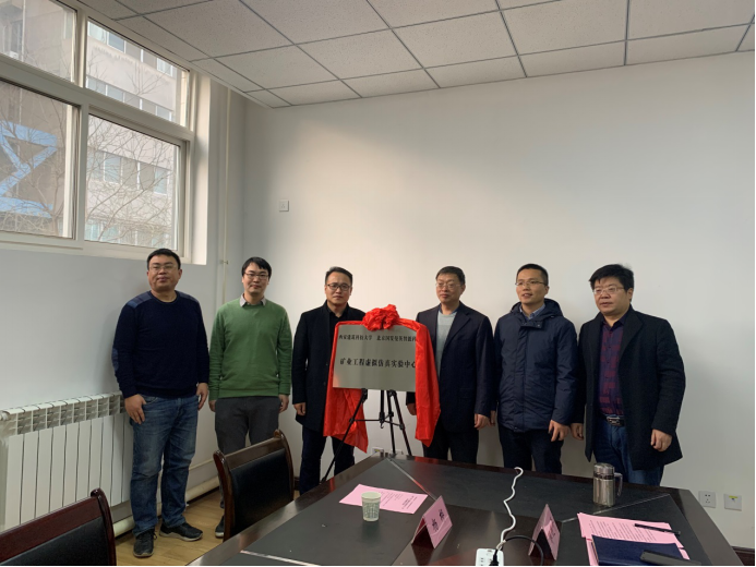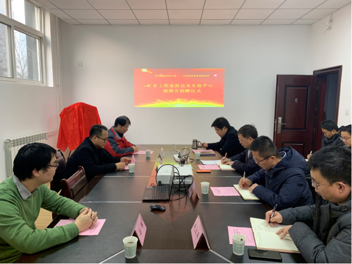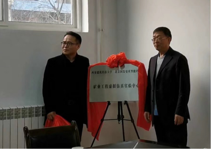 院长卢才武与北京国发曼英智能科技有限公司总经理张海超代表校企双方共建“矿业工程虚拟仿真实验中心”揭牌。
